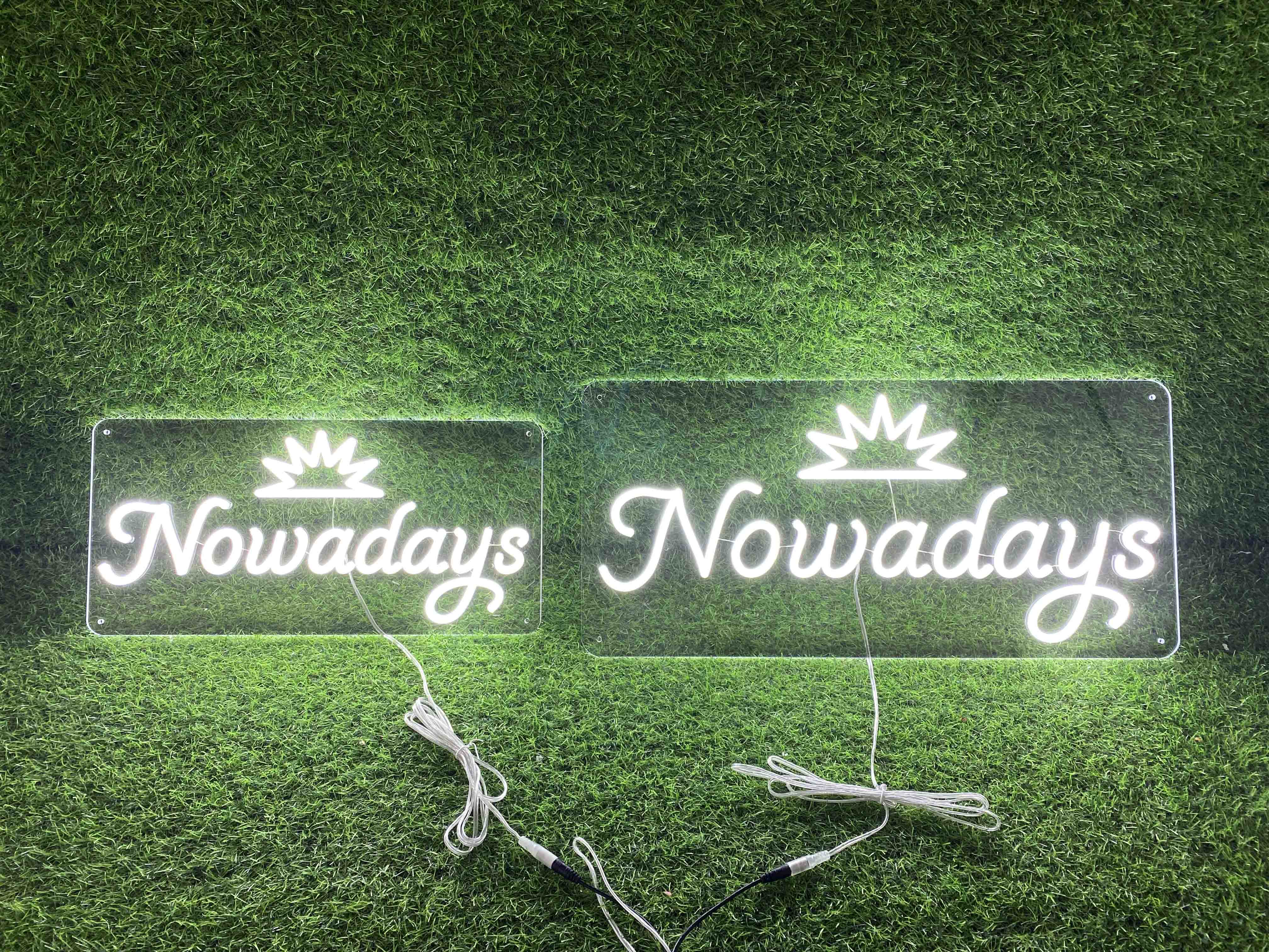 Our client “Nowadays” required a clean, modern, and highly visible LED neon logo sign to enhance their retail branding and improve customer engagement. The goal was to create a bright, elegant display piece that could be installed on an interior wall, used for product photos, and incorporated into promotional events.
