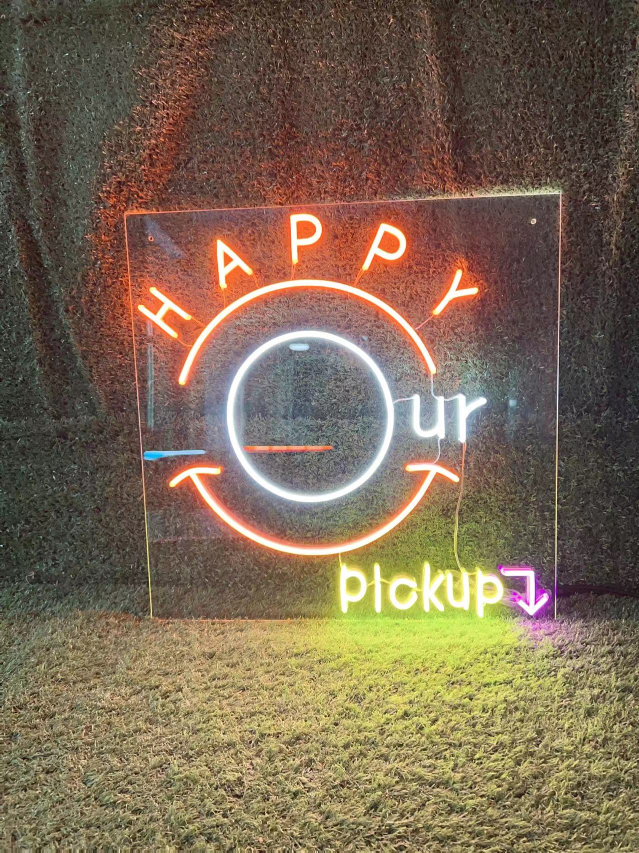 The client, Happy Our, required a custom LED neon sign to enhance the visual impact of their pickup area. The goal was to create a bright, modern, and highly recognizable branded sign that would attract customers, improve wayfinding, and strengthen brand identity in both daytime and nighttime environments.