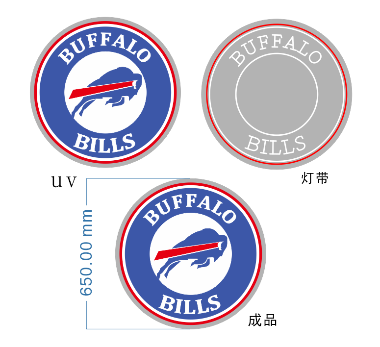 This project showcases a custom round LED neon sign produced for a sports-themed brand inspired by the Buffalo Bills identity. The client required a high-impact LED neon sign for indoor wall display, suitable for sports bars, fan stores, game rooms, and promotional spaces.