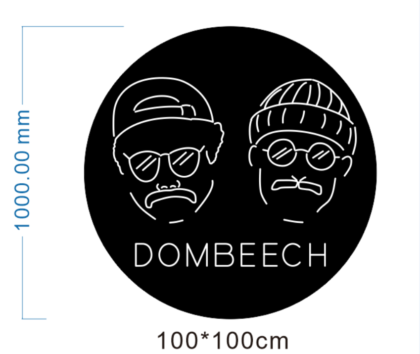 The final product clearly highlights the DOMBEECH logo, creating a modern and eye-catching brand display.