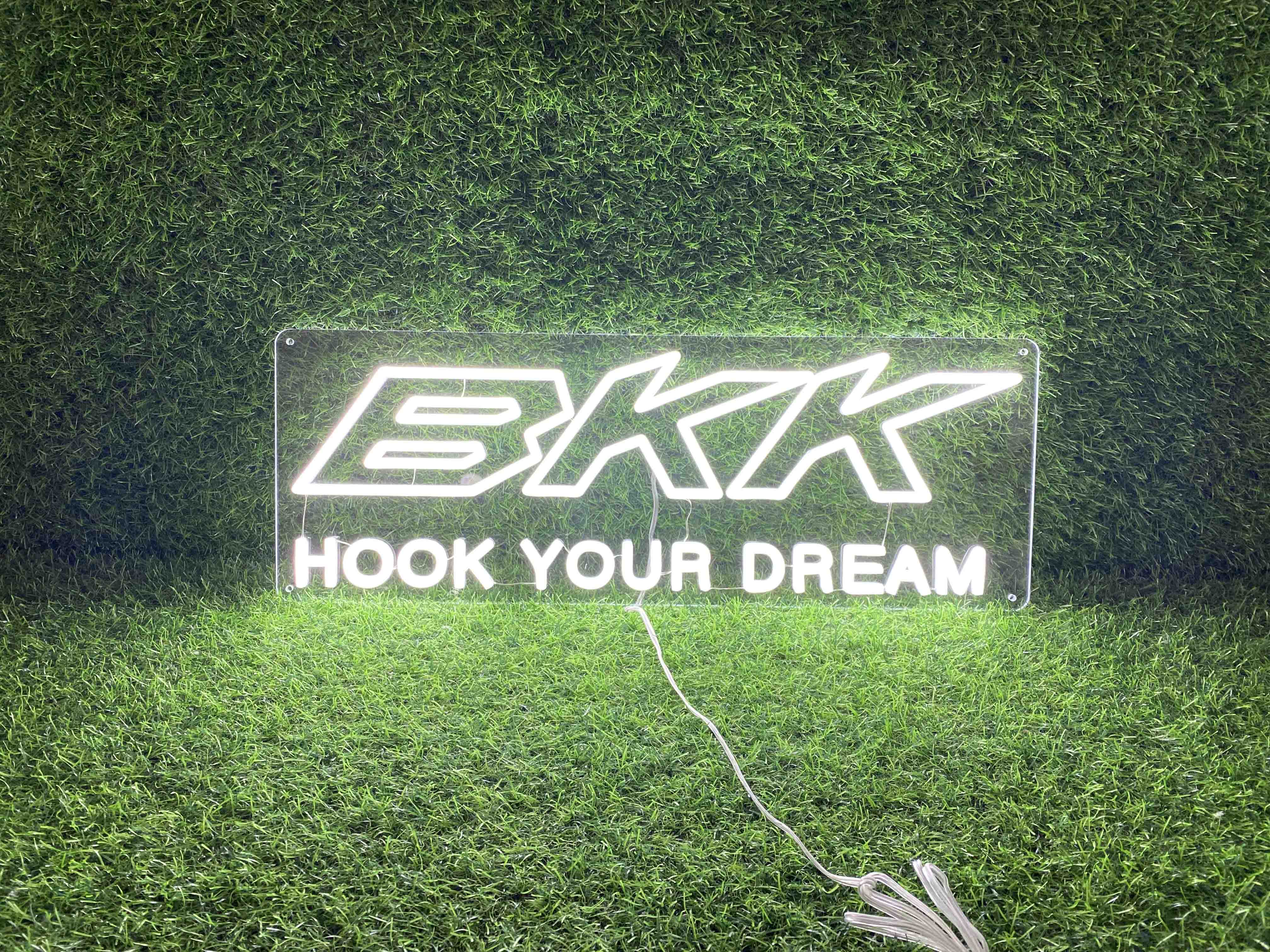 This successful project showcases a custom LED neon sign produced for an overseas brand named BKK, featuring the slogan “Hook Your Dream.” The client required a modern, eye-catching illuminated sign for brand promotion in retail and exhibition environments.