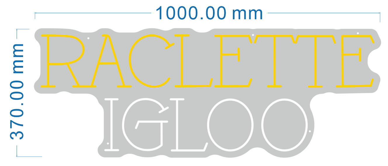 2. Neon Color: "RACLETTE" with single yellow neon flex, "IGLOO" with single white neon flex