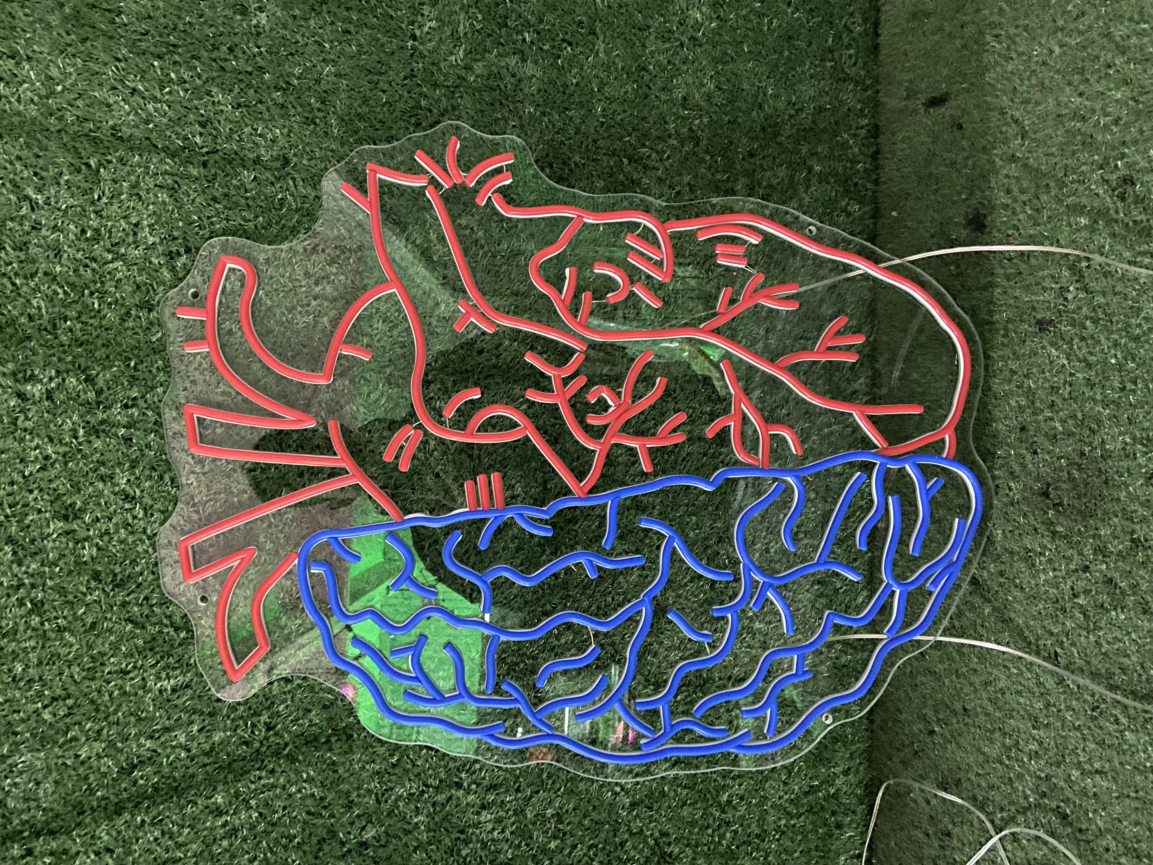 We customized a dual-color LED neon sign featuring a human brain and heart combination: